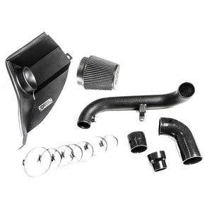 This air intake kit provides all the necessary piping and couplers to plumb the intake system from the turbo to the MAF and then to the heat shield. The heat shield installs using the OE grommets for easy maintenance and reliable mounting with no rubbing or interference with other factory parts.