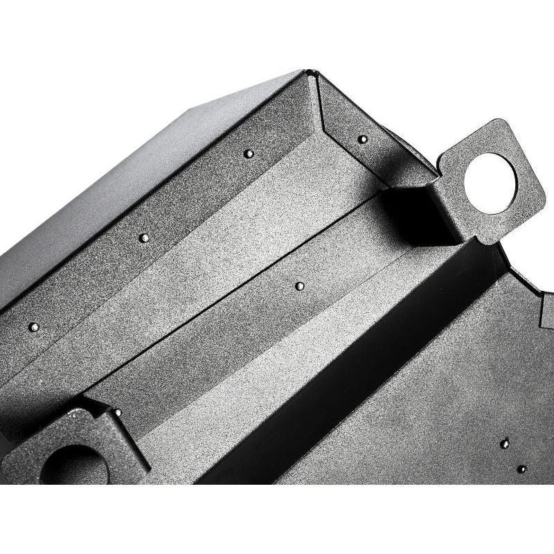 The IE heat shield is designed to create a thermal barrier blocking all of the radiant heat from the engine bay. Only cold air from the front of the vehicle is drawn into the filter from the opening in the radiator support keeping air intake temperatures as cold as possible. This allows factory placement of the intake to be used without placing the filter lower in the vehicle where it can be subjected to engine harming road debris or fluid.