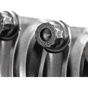The preferred method of measuring bolt load is with a stretch bolt gauge. The included ARP 2000 bolts need to be tightened and measured to .006” of stretch using the included ARP assembly lubricant.