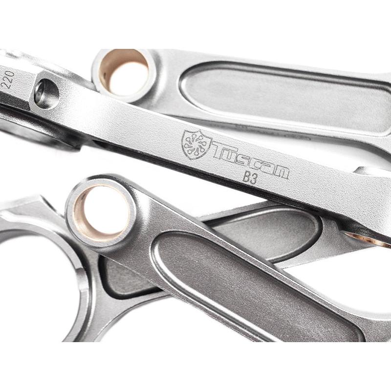 Tuscan connecting rods represent the leading edge of technology for bottom end strength, reliability, and light-weight engineering staff utilizes the most modern technology to optimize these rods to a level never before seen at the enthusiast level. Give your engine a reliably strong connecting rod set that is rated for engines up to 1000BHP!
