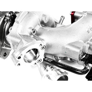 From the beginning, our engineers wanted to make this K04 a simple, quick installation, without adding a lot of extra parts and mess. So, our team actually machines the compressor covers of the Borg Warner K04 turbocharger and attaches an adapter plate to allow the diverter valve to fit exactly in it’s OE location for TSI engines. This makes the installation quick, neat, and with no fitment issues you might have with aftermarket Diverter relocation kits. No wiring is required as a consequence of this.