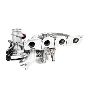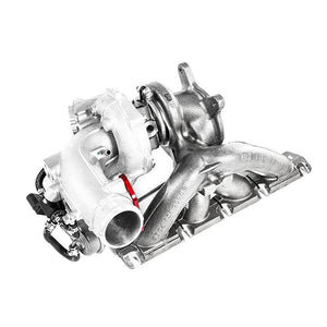 This turbocharger is an OEM turbocharger from the MK6 Golf R. We then modify it to place the diverter valve in the OE location so the fitment is exactly like stock for an easy install.