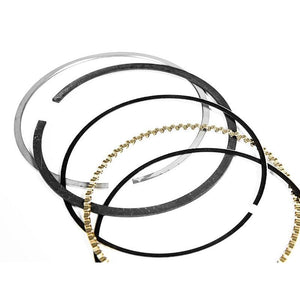 Included is a set of performance piston rings, featuring a barrel-faced top ring, ductile iron, and 3 piece oil ring. These rings are designed to eliminate unnecessary drag, which reduces friction and increases power. To maximize power output, the clearances between the rings and piston have been brought in very tightly to reduce blow by. This is achieved by hard anodizing the top ring lands, which prevents micro welding which could be caused otherwise. Beneath the top ring and second ring lands an accumulator groove is machined, which provides a cavity where blow-by gasses can collect. This reduces pressure between rings, while virtually eliminating ring flutter and keeps top rings sealed securely against the bores.