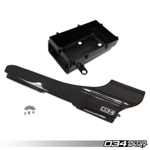 The 034Motorsport X34 Carbon Fiber Lower Intake Box and Fresh Air Duct for the Audi 8S TTRS and 8V.5 RS3 complements the 034Motorsport X34 Cold Air Intake (both the open top and closed top versions). This combination improves airflow and throttle response with dyno-proven horsepower gains.