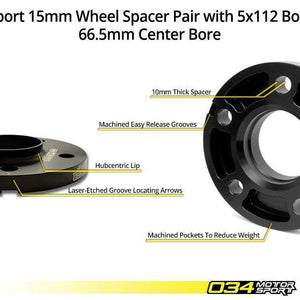 034Motorsport'sDynamic+Flush Wheel Spacer Kit is designed to fit Volkswagen vehicles with a 66.5mm center bore and 5x112mm wheel bolt patterns. These wheel spacers are manufactured from 6061 billet aluminum with a black anodized finish and feature a few cool features you will appreciate if you have had experience with spacers before. Wheel spacers increase track width to improve handling, allow for more brake clearance, and help achieve the more flush wheel/tire fitment you desire for your car.