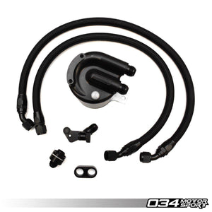 034Motorsport's engineers invested significant effort developing and testing to create the most comprehensive and effective catch can kit on the market for the 2.0T EA888 Gen3 motor. The 034Motorsport Billet Aluminum Catch Can Kit for 8V Audi A3 & MkVII Volkswagen GTI features a completely revised high-capacity design to provide optimal crankcase ventilation while keeping oil and water vapor out of the intake track. Furthermore, this catch can prevents oil ingestion during hard driving and heavy cornering loads seen on track. This kit is designed to prevent oil from depositing in the intake manifold and intake valves, resulting in drastically reduced carbon buildup and extended life from the motor.