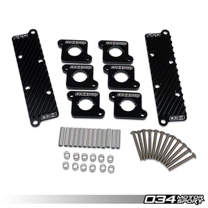 The 034Motorsport Coil Pack Hold-Down Bracket Kit for Audi B5 S4/RS4 & C5 A6/Allroad 2.7T vehicles keeps your upgraded 2.0T FSI style coil packs secured any conditions. The kit utilizes an anodized billet aluminum bracket with integrated uni-directional cooling fins to not only secure the coil pack to the spark plug and head but also to act as an additional heat sink to extract heat out of the coil packs.