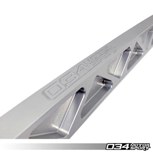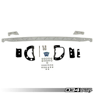 The 034Motorsport Strut Brace incorporates an extremely rigid billet aluminum center section that attaches to both strut towers and to the firewall in two locations, improving the vehicle's steering feel and handling performance. This robust chassis reinforcement is machined from 6061-T6 billet aluminum, and engineered to be a comprehensive upgrade by limiting lateral strut tower deflection and maintaining proper suspension geometry under heavy cornering. The end result is a significantly more rigid front end that provides precise, consistent feedback through the steering wheel and ensures that you enjoy a more connected driving experience.