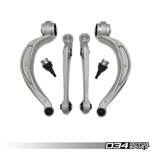 034Motorsport's complete Density Line Control Arm Kit with Upper Adjustable Control Arms is designed to be a performance replacement for all eight of the factory front upper and lower control arms. Featuring high-durometer rubber bushings, high-quality ball joints, machined-billet upper adjustable control arms, and Aurora spherical bearings, this kit is engineered to limit unwanted deflection in the suspension. The result is tighter handling and more precise steering response than even brand new factory control arms can offer. In addition, adjustable upper control arms allow optimal alignment for your lowered or track driven vehicle.