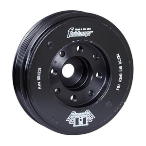 Accepts OEM style crankshaft pulley tool. Stock size pulley does not overdrive/underdrive accessories. No tuning or maintenance required.